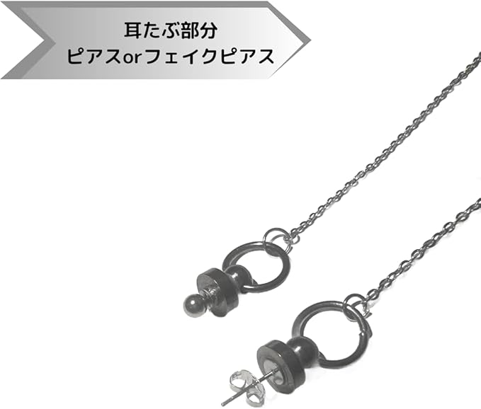 口に穴を開けなくても付けられるダミー口ピアスです。唇に引っ掛けて付けるタイプです。耳たぶ部分はフェイクピアスと通常のピアス2種類からお選びいただけます。