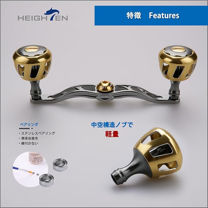 【サイズ】ノブ直径32mm、ハンドル軸心距離120mm/130mm 【総重】37g / 45g【素材】70シリーズ航空アルミ。