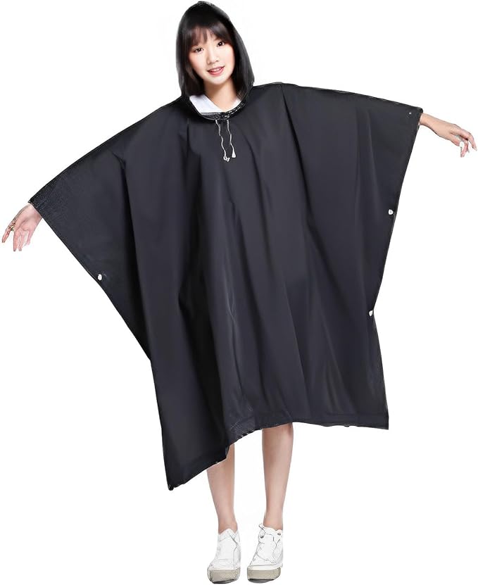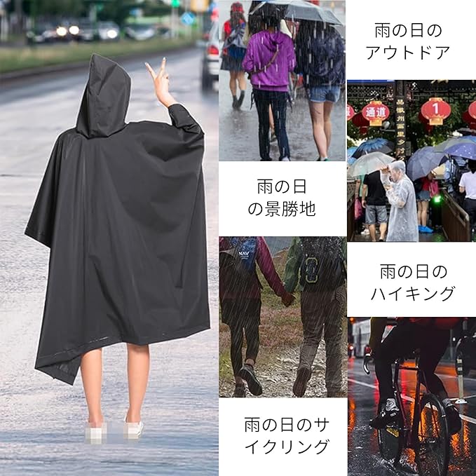 【レインポンチョ】フリーサイズです(適用身長:150~190CM;適用体重:40~95KG) 学生、高校生、男女兼用。レインコートの長さ130cm、幅101cm、ワンサイズ。セット:1枚。色: ブラック
