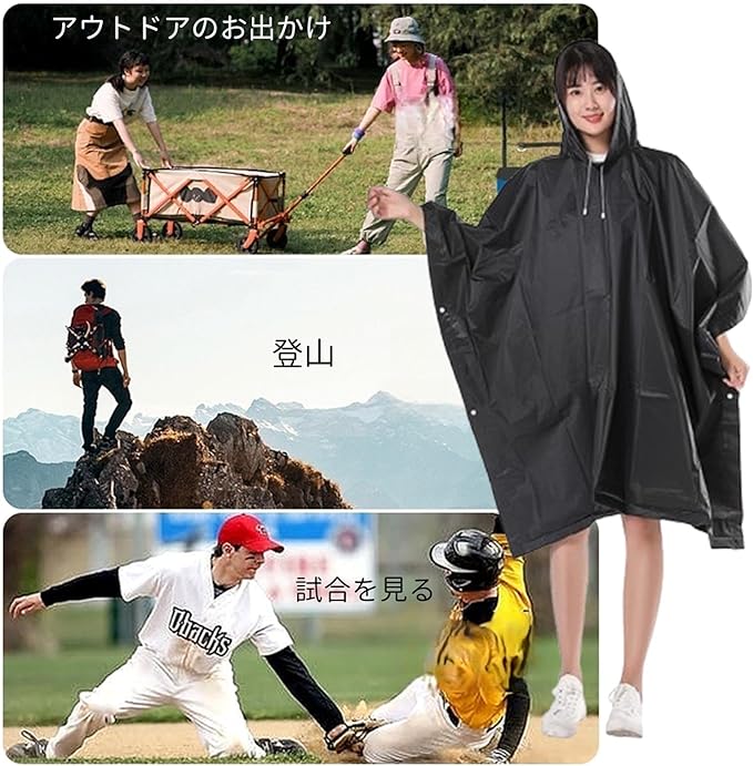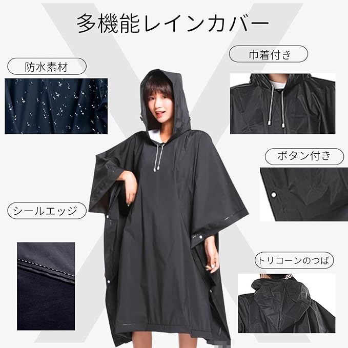 [LANGING] レインポンチョ EVA素材 ポンチョ メンズ レディース 学生 高校生 自転車用レインコート リュック対応 通学 通勤 防災グッズ 雨合羽 大人用 フリーサイズ 複数回使用可能 防水防風 雨具 梅雨対策 軽量 男女兼用 | oioioichan