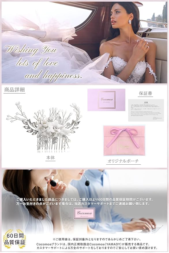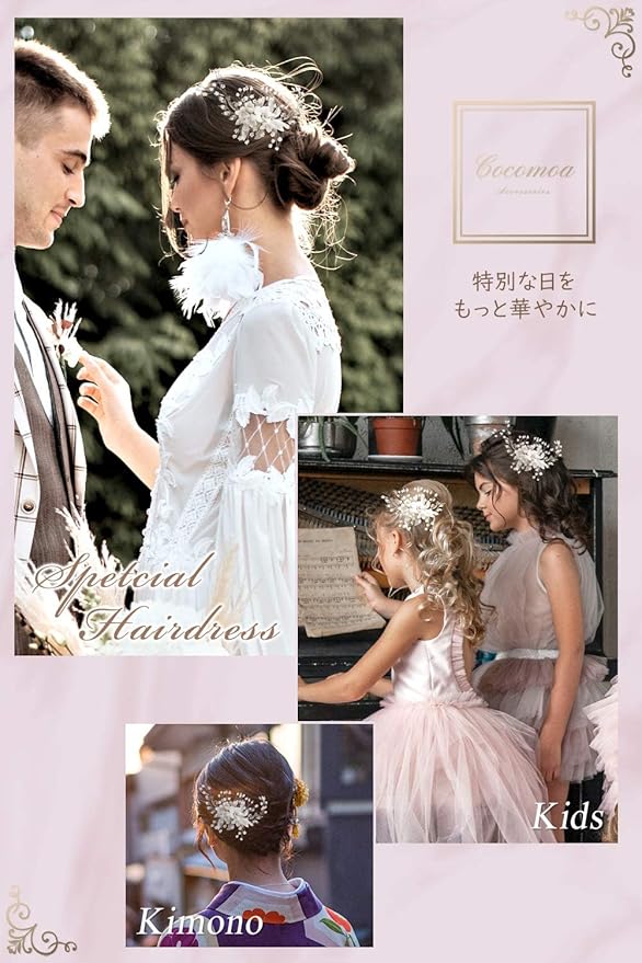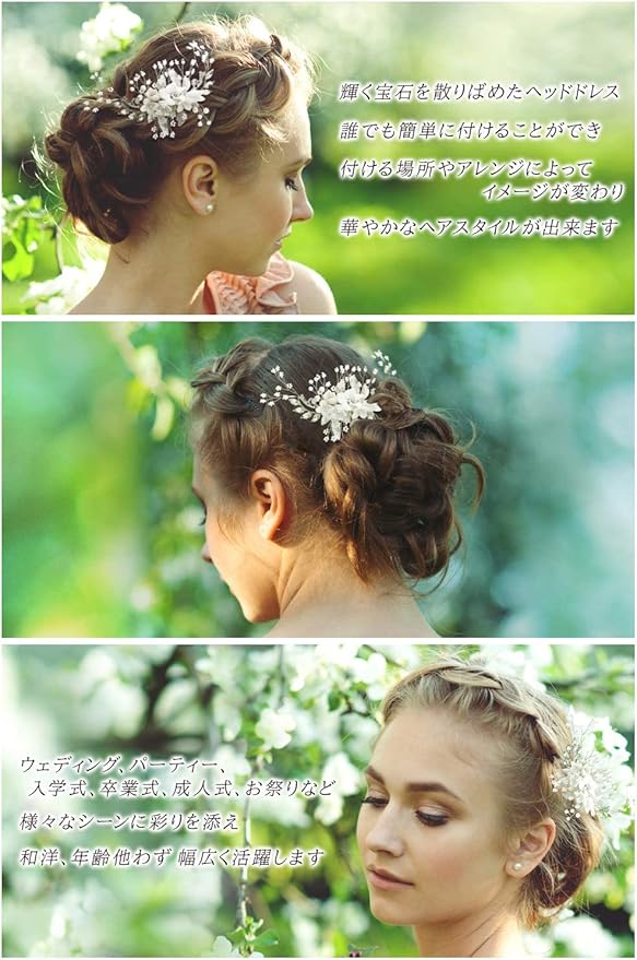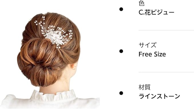 【様々なヘアアレンジに対応】結婚式、披露宴やパーティードレス等のフォーマルなヘアスタイル、和装のまとめ髪以外にも、日常でのカジュアル使いでも活躍いただけるデザインです。丁度いい大きさや高級感があるデザインでドレスや雰囲気にあわせて、自由に付ける位置を変えたり、個数を変えることで、気楽に様々なヘアアレンジに対応できます。