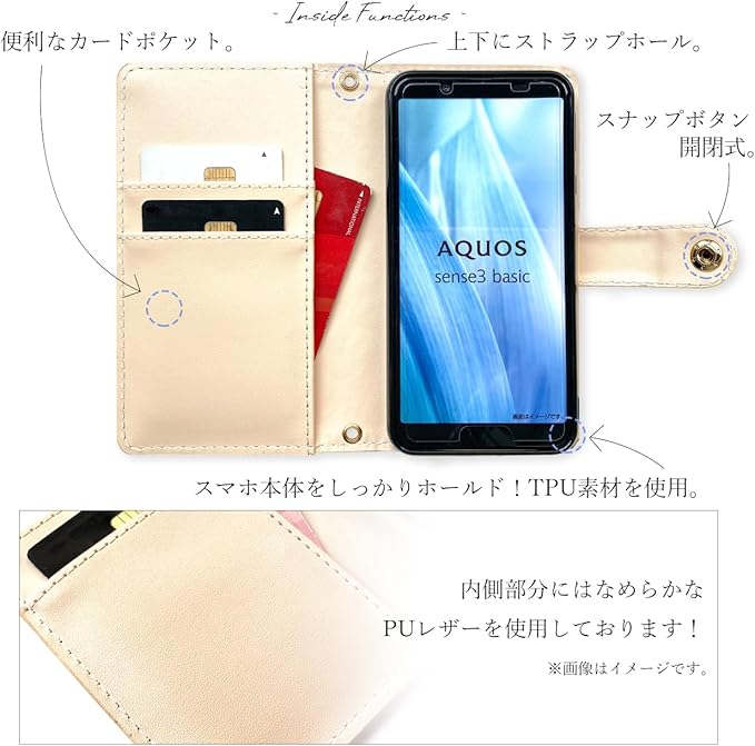 【AQUOS R10 R9 SH-51F SH-51E docomo A501SH A401SH softbank SH-M31 SH-M28 SIMフリー SHARP 専用 手帳型ケース】商品名にご希望の機種名、型番名が含まれておりましたら、それらに対応した手帳型ケースとなります。背面部のカメラ穴や指紋認証穴部分等も、それらの機種に対応している開口部を開けておりますので、ご確認のうえ、ご注文をお願いいたします。