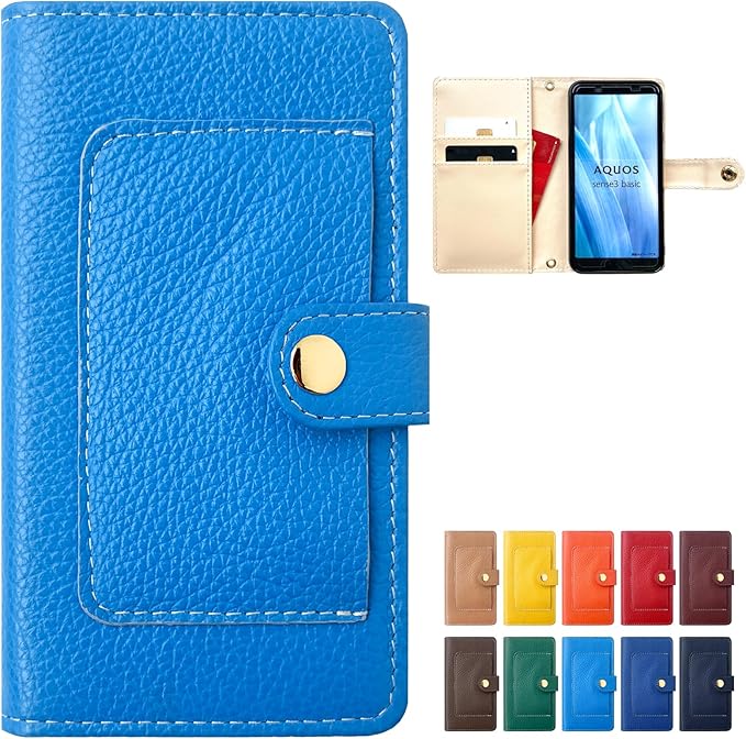 AQUOS R10 SH-51F A501SH SH-M31 R9 SH-51E A401SH SH-M28 専用 本革 手帳型 ケース カバー SH-51Fケース A501SHケース SH-51Eケース A401SHケース 手帳ケース 手帳型ケース スマホケース ポケット付き 紳士淑女 スカイブルー | oioioichan