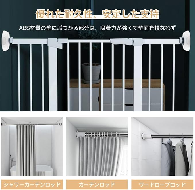 【多機能4点セット、万能保護】:赤ちゃんドア、ペットドア、シャワーカーテンの支持などのシーンをカバーし、家の中の多重需要を解決し、よろよろしている子供を保護しても、活発で動きやすいペットでも、日常用品を安定させても、余裕がある。