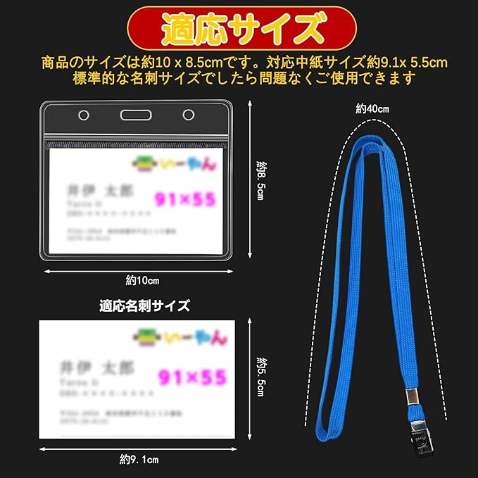 【製品サイズ】約10 x 8.5cm【適合用紙サイズ】約9.1x 5.5cm ストラップ付きなので、首に掛けて身に着けることができ、カードの紛失を防ぐことができます。先端パーツは金属クリップ、ソフトカードケースに取付けしやすいです