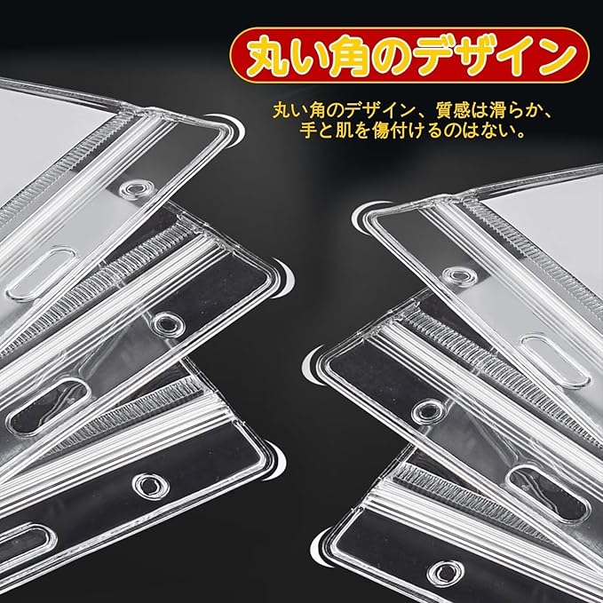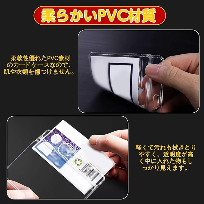 【PVC製で柔軟性ある名札ホルダー】PVC製のIDカードホルダーはシンプルな見た目で手軽に使えるんです。折り曲げても、丸めても傷が付きにくく、柔軟性があります。肌や衣類を傷つけません。透明なデザインなので、内側のカード情報が見やすく、防水性のある防水デザインで、雨天でもカードを保護します。