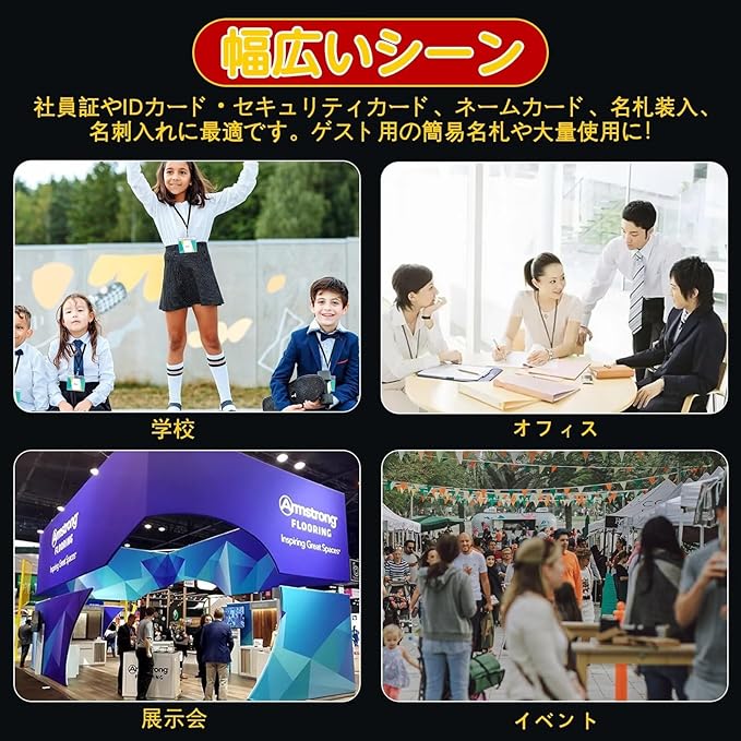 【各種イベントに最適】会社での普段使いからイベントまで、幅広くお使いになれます。展示会、見本市等に最適!ソフトな風合いで価格を抑えたエコノミータイプネームホルダー。 展示会、見本市、セミナーや各種イベントに最適。カラーも使い勝手のいいカラーが8色用意されています。