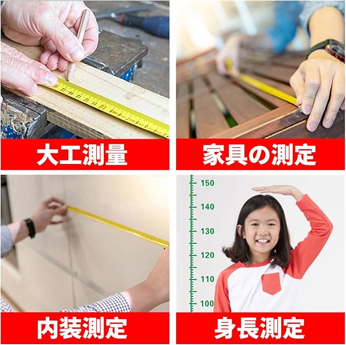 【多目的測定ツール】DIYプロジェクトから住宅改修まで、この巻き尺で完成できます。それぞれ5 M、8M、10Mの3種類のサイズがあり、必要なものを簡単に測定することができます。