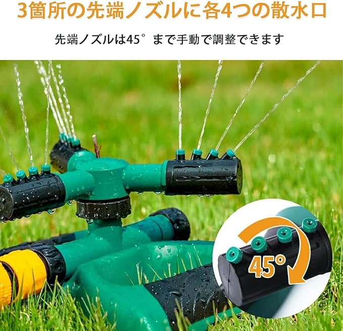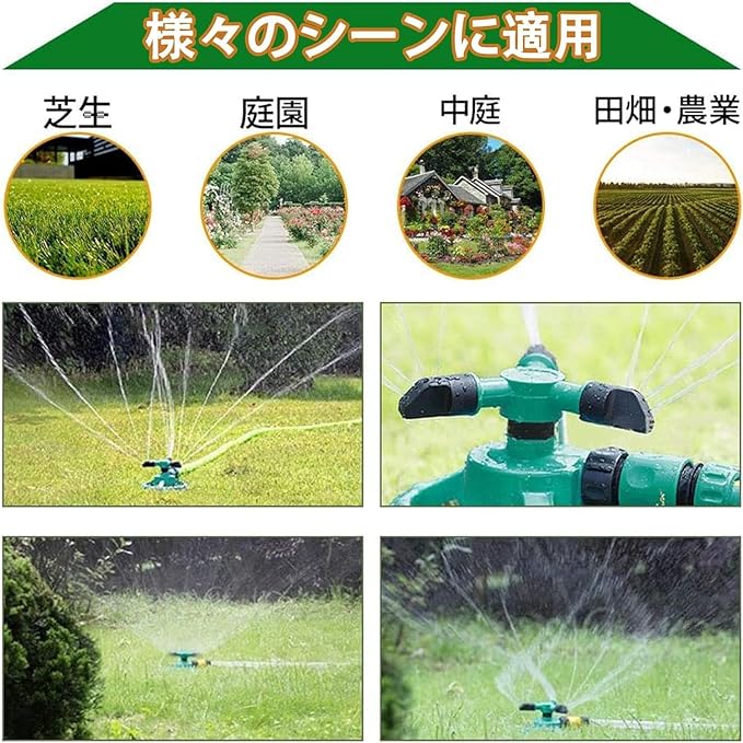 【用途が広い】家庭、庭、芝生、園芸、花壇、庭、道路などの芝生の灌漑に使えます。 お子様が水遊びをする時もお使いいただけます。 回転して、あなたの子供たちに面白いゲームをさせろ!
