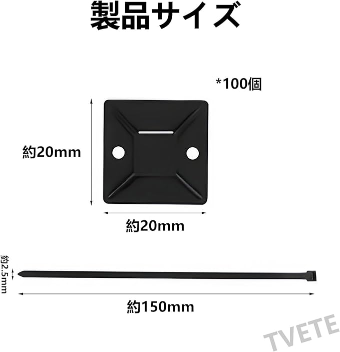 【パッケージ内容】数量:マウントベース*100+ジップタイ*100;サイズ:2cm 2cm;カラー:黑