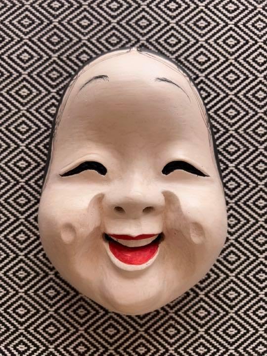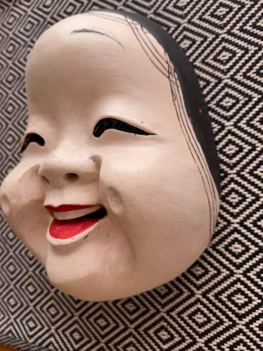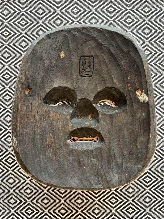 お面 おかめ 木彫り