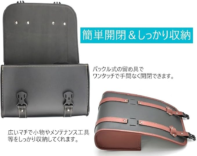 ✅【簡単開閉&しっかり収納】 バックル式の留め具でワンタッチで手間なく開閉できます。 広いマチで小物やメンテナンス工具等をしっかり収納してくれます。
