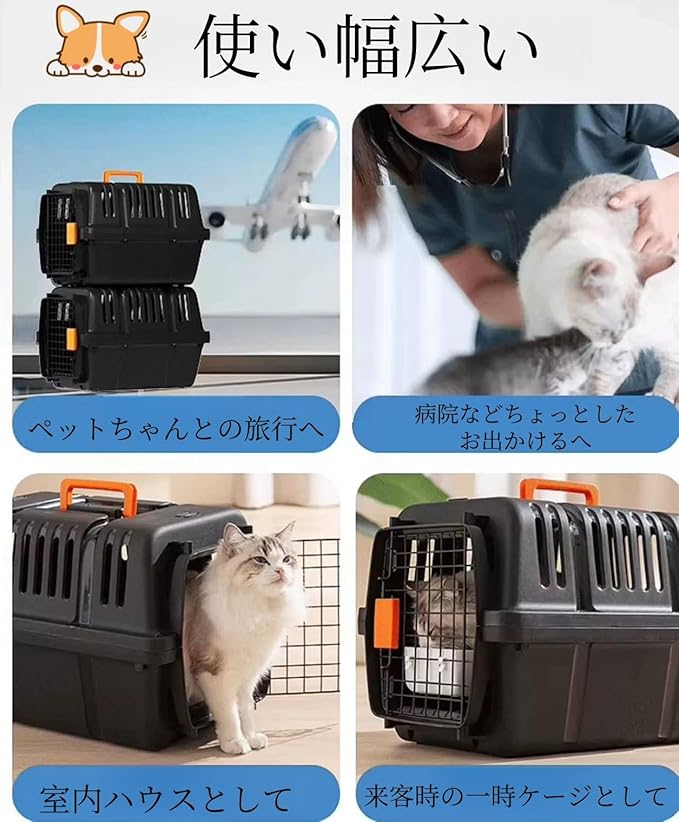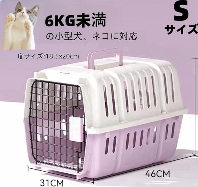 N&S ペットキャリー 猫 キャリー 犬 ゲージ ハードキャリー 取手付き 室内用ハウス IATA基準 お出かけ 旅行 S/Mサイズ 小型犬~中型犬 航空輸送対応ペットキャリーケース 通気性&組立簡単 ケージアウトボックス キャンピングキャリー (パープル, S)