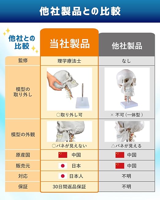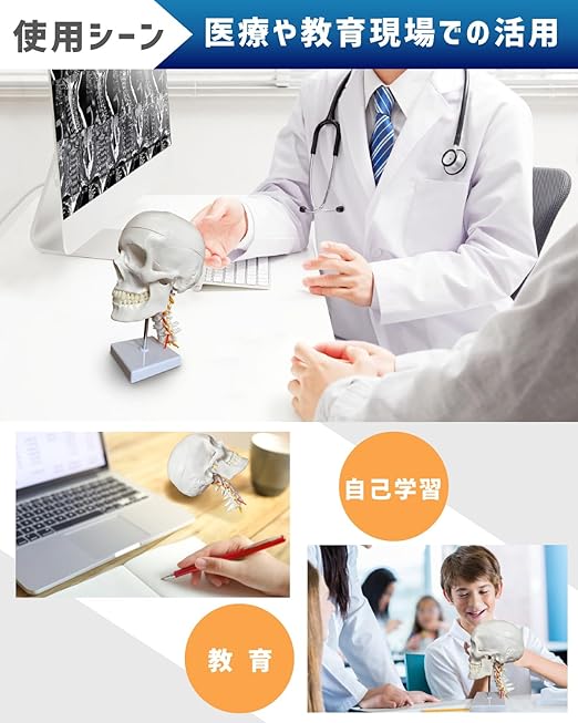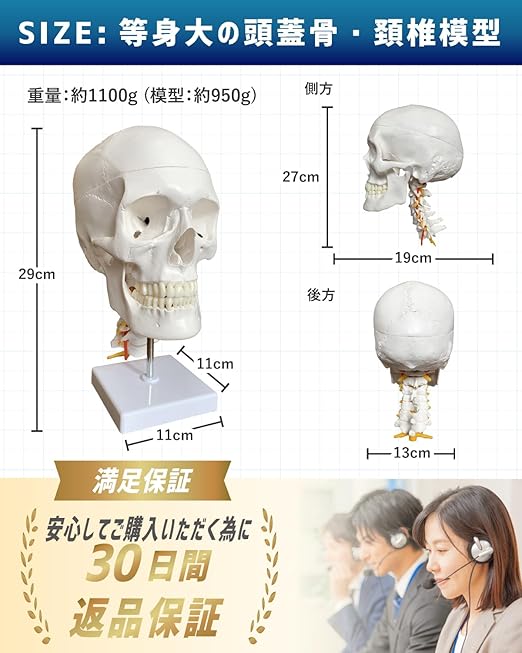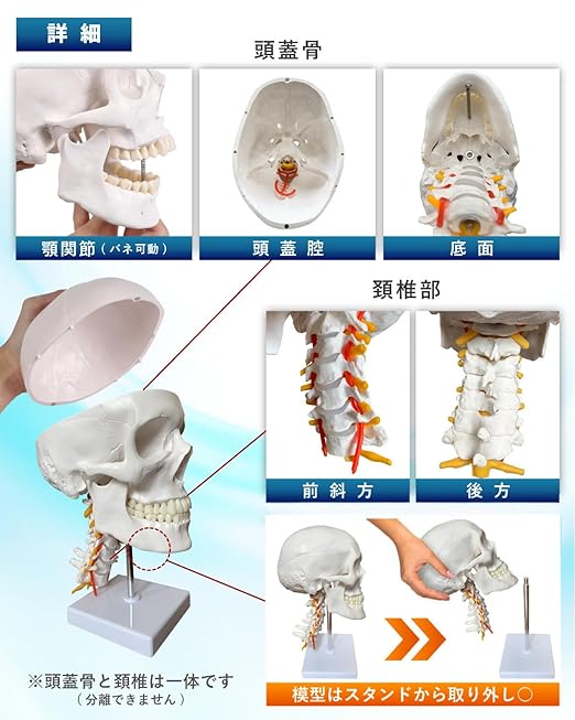 ✅サイズ:頚椎頭蓋模型 幅13cm 奥行19cm 高さ27cm 重量 約950g(土台支柱込みで約1100g) 原産国:中国