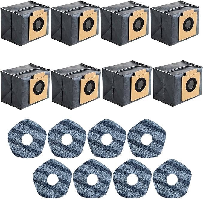 パッキングに含まれるもの: 8つの交換用モップ布と8つのダストバッグ。