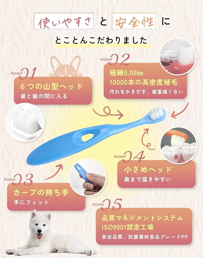 【安心安全の国内製造】大切なペットの口のお掃除だからこそ安心安全の工場で製造しています。抗菌素材のグレードPPのISO9001認定工場だから安心してお使いいただけます。