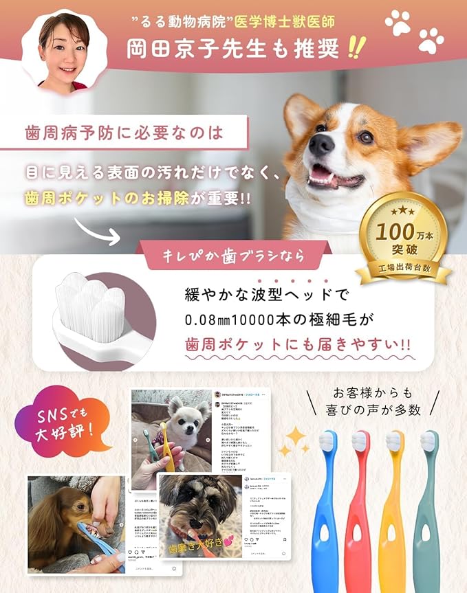 【キレぴか歯ブラシ誕生】るる動物病院 医学博士獣医師が推奨する歯周病予防に特化した、わんちゃんのための歯ブラシが誕生しました。