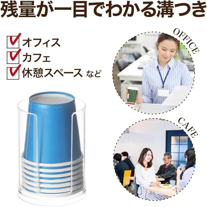【残量が一目でわかる】半透明のデザインですので、カップの残量が一目でわかります。デザインもシンプルでオフィスやカフェ、休憩スペースなどでもお使いいただけます。