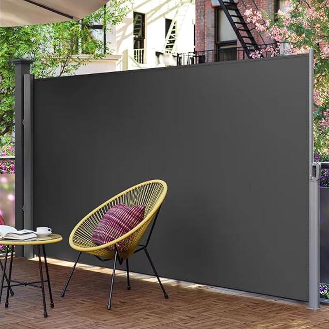 格納式と柔軟性 - 格納式パティオスクリーンのハンドルを使用すると、必要に応じて日よけを簡単に伸縮させることができ、必要な日陰やプライバシーの量を柔軟に調整できます。 さらに、格納式機能のおかげで、使用しないときはオーニングをすばやく簡単に保管できます。