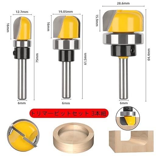 baoao(こう) トリマー ビット ルータービット 3本組 超硬ルーター・トリマービットセット タングステン鋼 溝ほり 面取り 飾り面加工 耐磨耗 耐熱 耐食 木工トリマービット | oioioichan