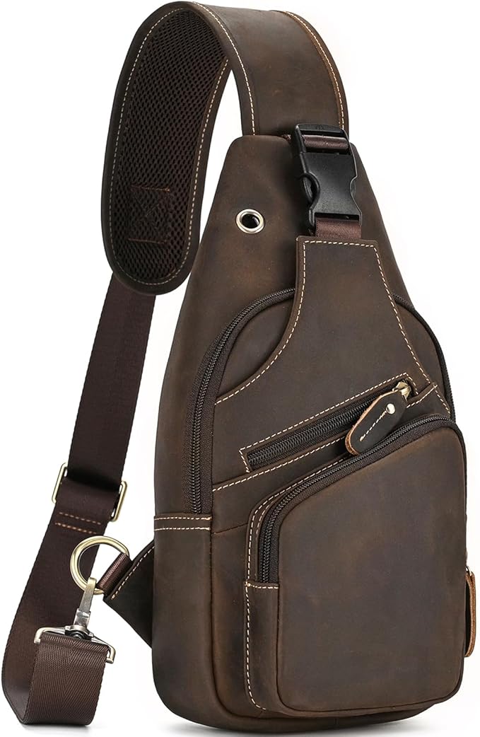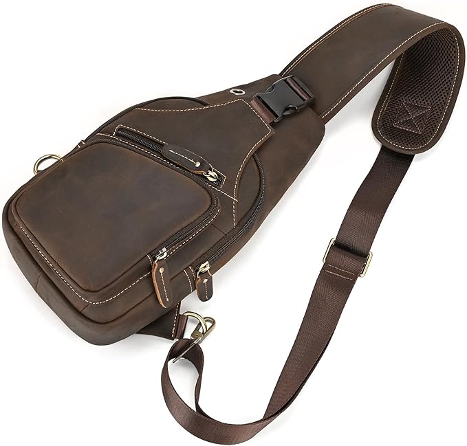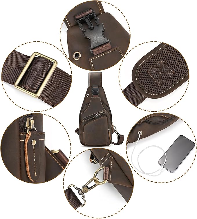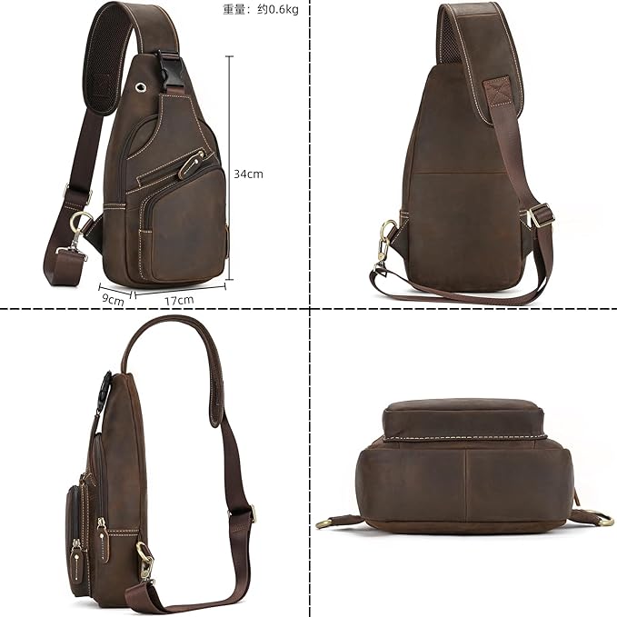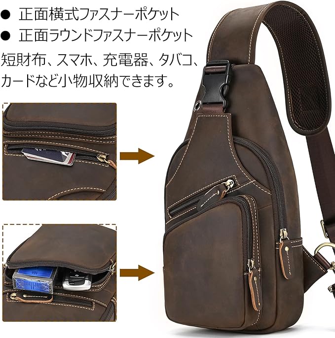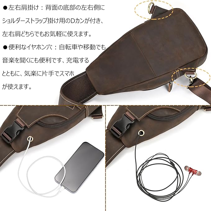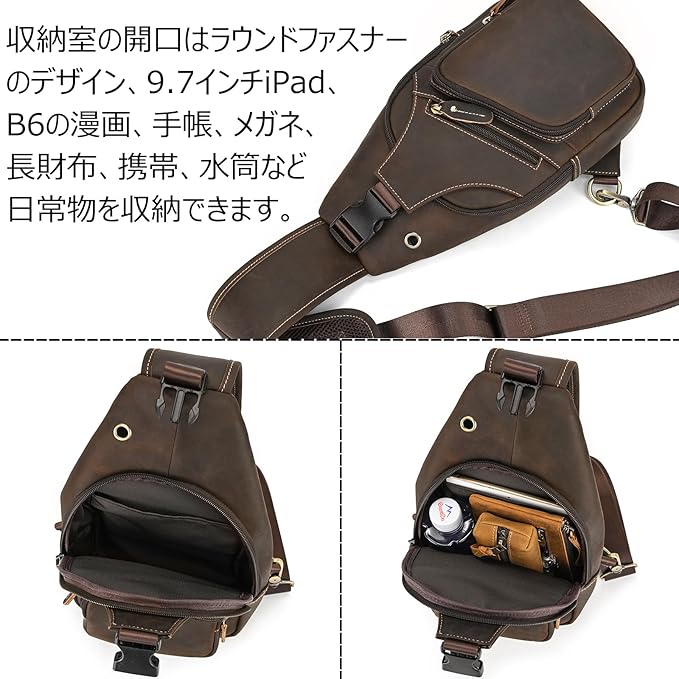 [Luufan] ボディバッグ 本革 メンズ ワンショルダーバッグ 大容量 レザー 斜め掛けバッグ iPad対応 通勤通学 男性用 左右肩付け替え可能 通気性 自転車用 カジュアル鞄 人気バッグ | oioioichan