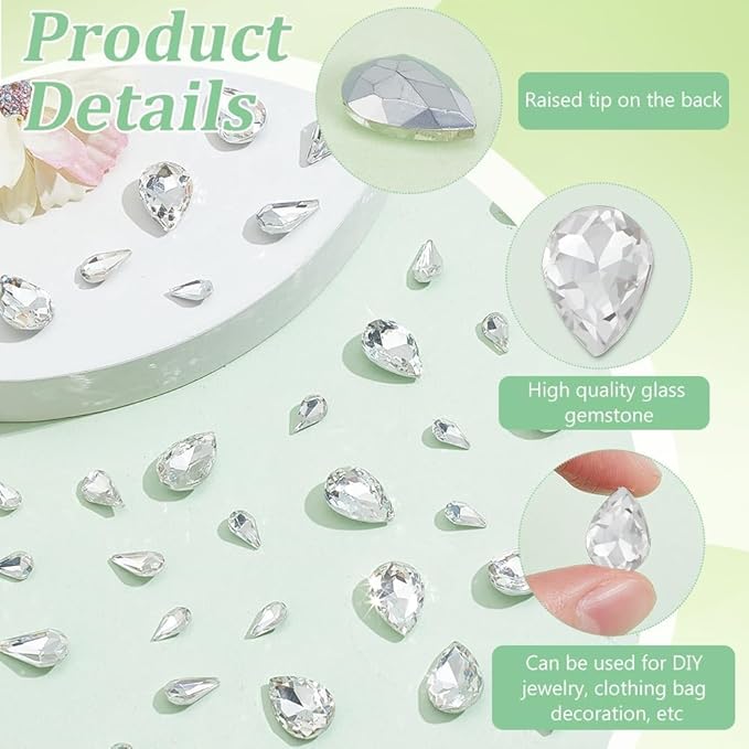幅広い用途: これらの尖ったボトムラインストーンは、通常、様々なパーティードレス、ウェディングドレスの装飾に使用され、DIYクラフト、様々な洋服の靴などを飾ります。 DIYネックレス、イヤリング、ブレスレット、その他のジュエリークラフトにも最適です。