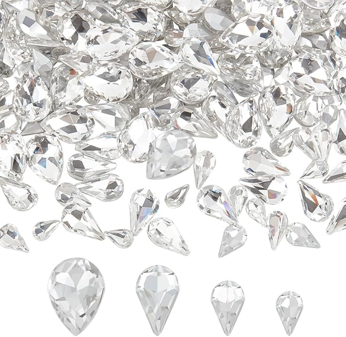 FINGERINSPIRE ミニティアドロップガラスラインストーン 220個 4サイズ ファセットポインテッドバックラインストーン 穴なし クリアガラスラインストーン 小さな宝石 クリスタルジュエリー装飾 シルバーメッキバック DIY用 | oioioichan