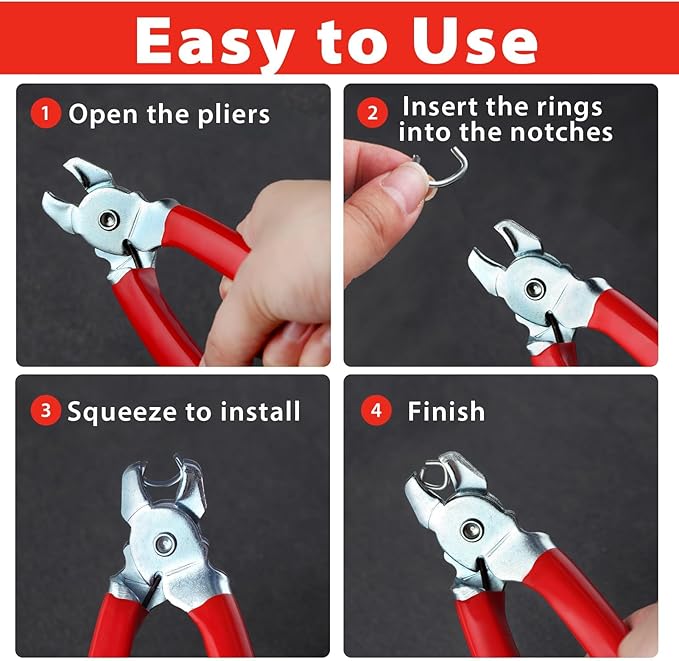 用途:これらのホッグリングプライヤーは、動物のペットケージ、手すり、カーシートクッション、ソーセージケーシング、フェンシング修理、トラップなどの様々な自動車および家具の内装プロジェクトに理想的です。