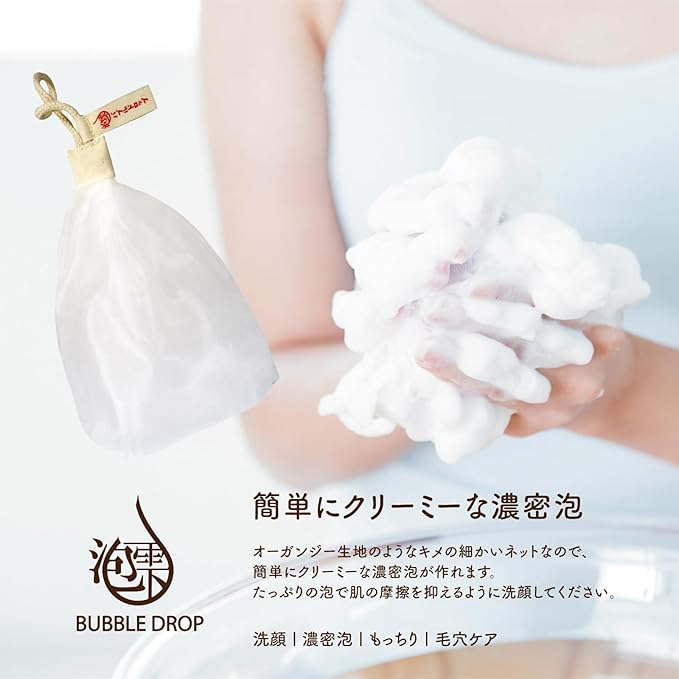 ✅【簡単にクリーミーな濃密泡】オーガンジー生地のようなキメの細かいネットなので、簡単にクリーミーな濃密泡が作れます。たっぷりの泡で肌の摩擦を抑えるように洗顔してください。
