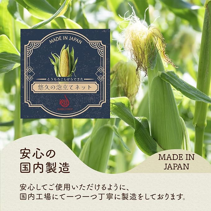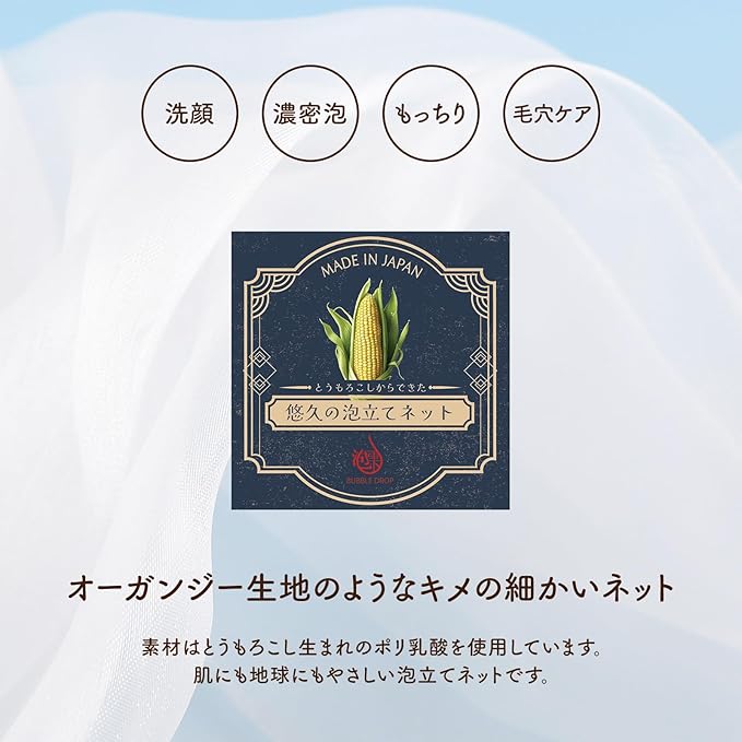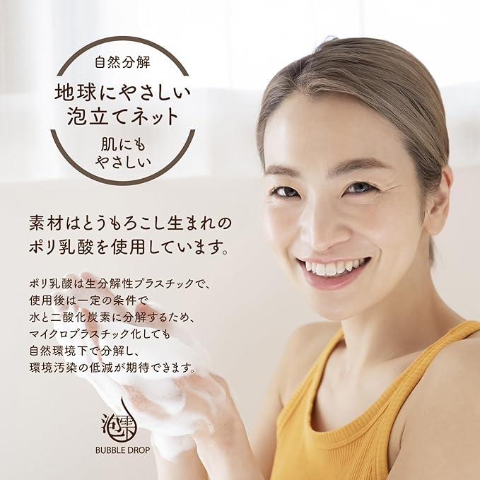 ✅【地球にやさしい泡立てネット】素材はとうもろこし生まれのポリ乳酸を使用しています。肌にも地球にもやさしい泡立てネットです。
