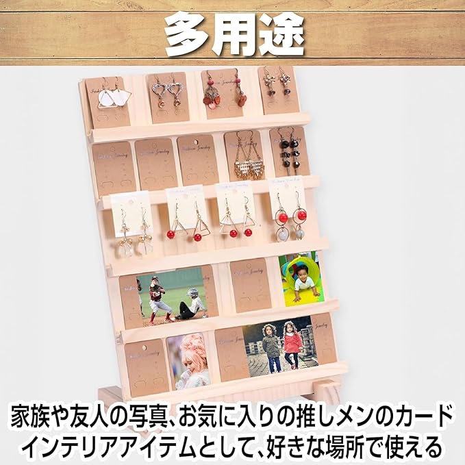 【多機能ディスプレイ】 アクセサリーだけでなく、名刺やカードを置くスタンドとしても使える多機能性。オフィスやショップでの使用にも最適で、様々なシーンで活躍します。