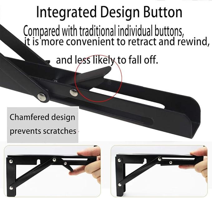 【便利な折りたたみ収納棚】: 邪魔になる場合にはワンタッチで簡単に折り畳むことができる折りたたみ式ブラケットです。折りたたむ際には、少し引っ張りながら折りたたむ必要がありますが、意図せずに落ちることはありません。下部にあるボタンを軽く「タッチ」しながら押すと、簡単にコンパクトに収納することができます。場所をほとんど取らず、収納に便利です。(ご注意:折りたたむ際に指を挟まないように十分に気を付けてください。)