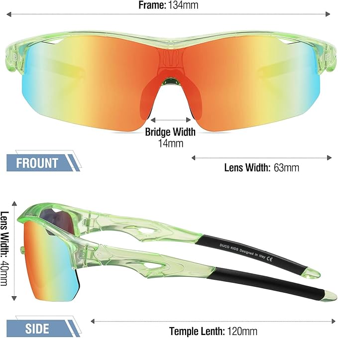 100%UVカットレンズを使用しており、紫外線から子供の目を保護します。長時間の屋外活動や野球の試合中でも、眩しさや光の反射を軽減します。