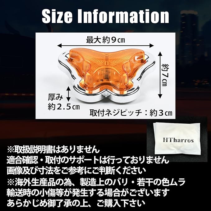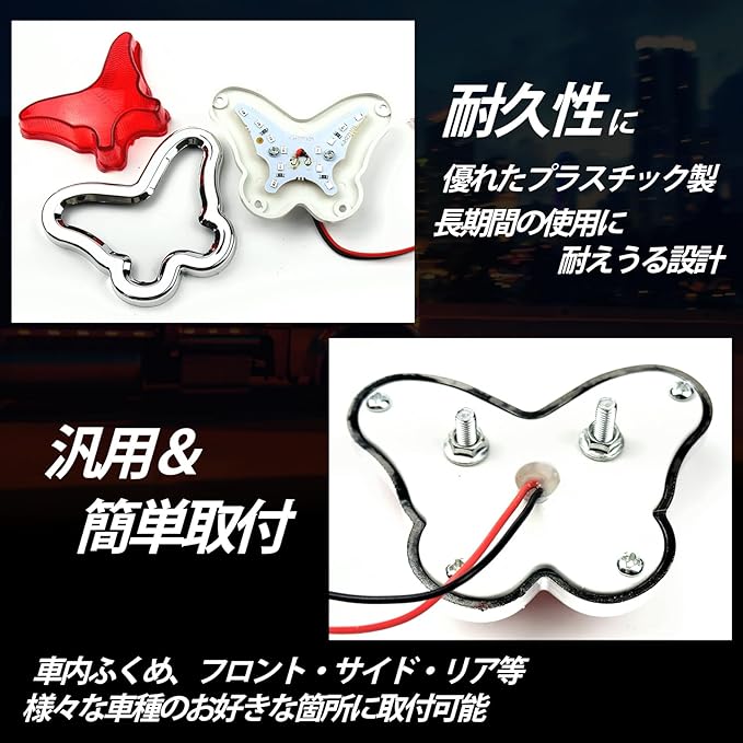 【安全性向上】HTharrosの蝶型、サイドマーカーランプは夜間のドライブをより安全にします。明るいLED光で、あなたのトラックやデコトラが他のドライバーにしっかりと認識されます。事故防止にも繋がるこのライトで、夜道も安心して走行できます。