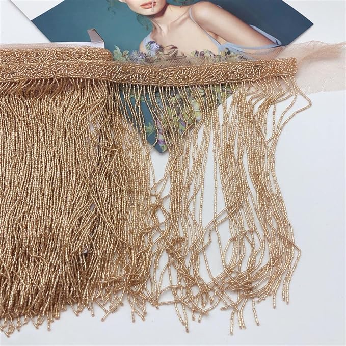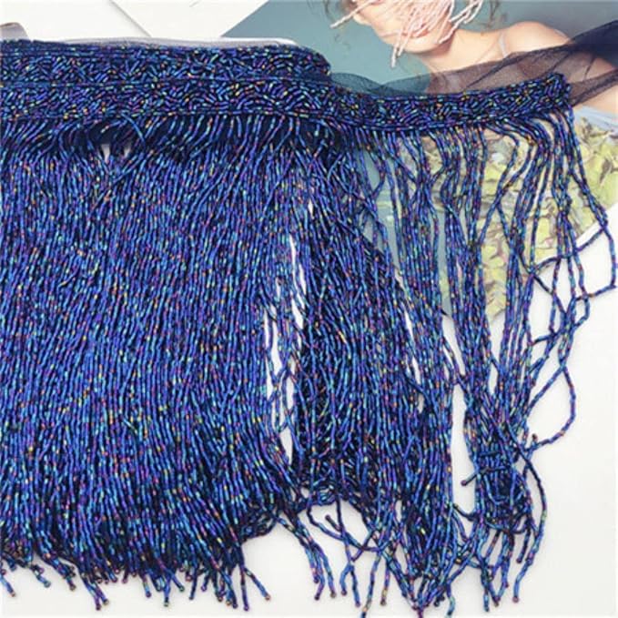 フリンジ タッセル トリム、カーテン クラフト ドレス トリミング、2 ヤード (1.8 メートル) ゴールド ヘビー ビーズ フリンジ タッセル トリム、ダンス衣装用、オートクチュール ドレス トリミング ビーズ フリンジ、多くの色 (Color : Navy Blue) | oioioichan