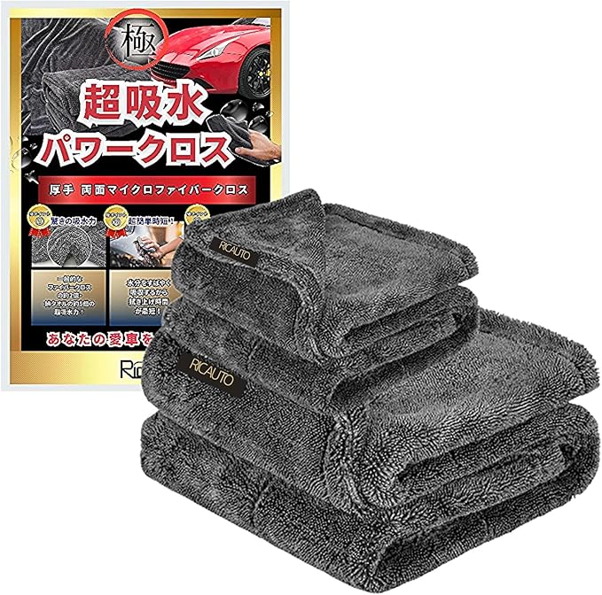 【所ジョージの世田谷ベース掲載】RICAUTO GS洗車チーム推奨 洗車 タオル 洗車用品 マイクロファイバークロス 洗車 マイクロファイバータオル ながら 超吸水 両面使用 拭き上げ専用 ドライヤークロス 1200GSM 大判 厚手ツイストパイル(大判 L(60 90cm)1枚+М(40 40cm)1枚