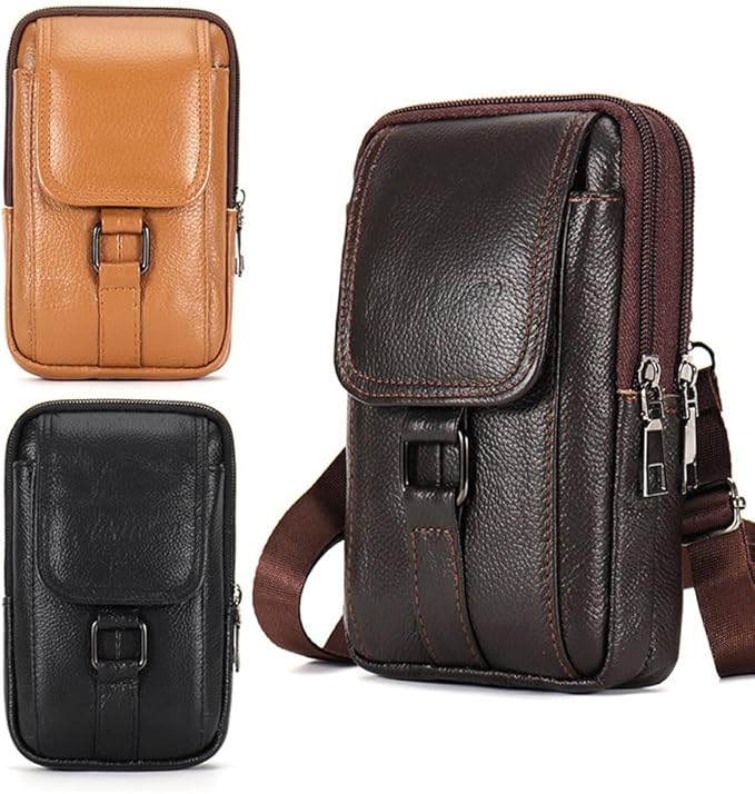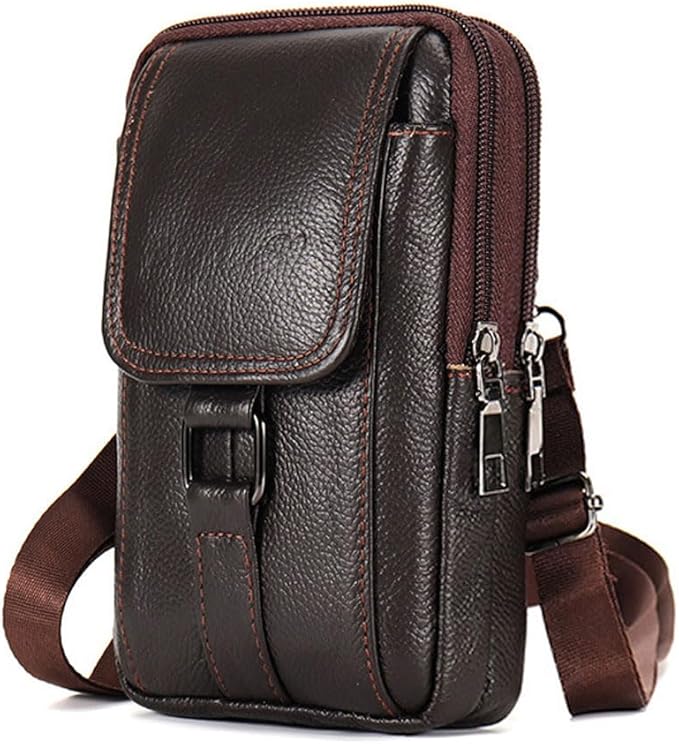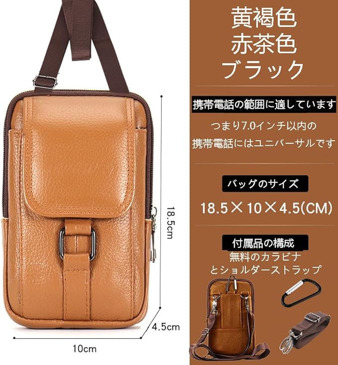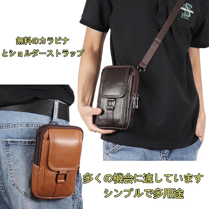 SEKIDAR メンズ スマホポーチ ベルトポーチ ショルダー バッグ 本革 トラベルポーチ 通勤 カードバッグ クロスボディバッグ 小物入れ ガジェットポーチ 多機能収納 カラビナ ショルダーストラップ付き スマホポーチ7ンチ未満 | oioioichan