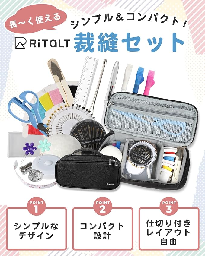 【長ーく使える裁縫セット!】シンプルなデザイン&コンパクト設計!小学生から大人までずっと使える裁縫セットです。旅行用ポーチやガジェットポーチとしても◎\(^^)/