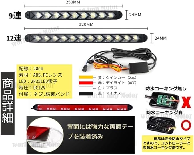 ✅ 12V 車 用 LED シーケンシャル 流れる ウインカー 2本セット の 汎用品 です。