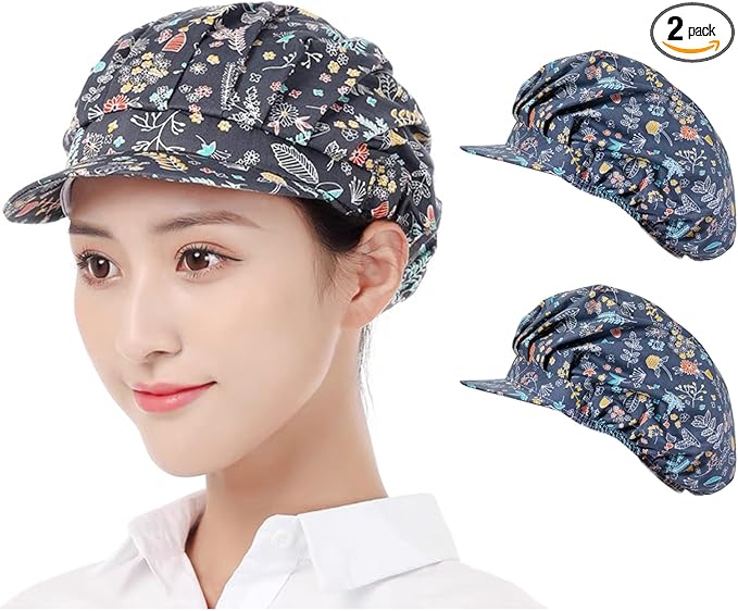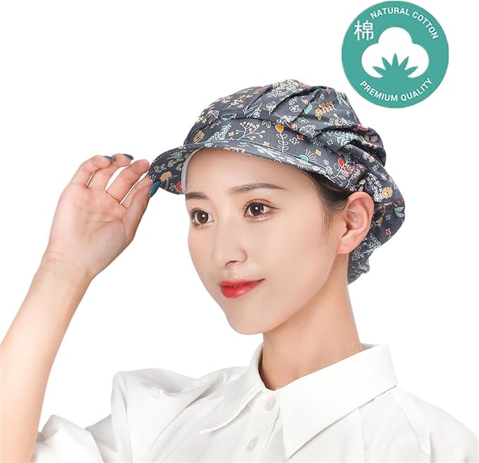 【かわいい衛生キャップ】かわいいつば付き、清潔感のある業務用帽子です。丸型のシルエットで髪の毛をしっかり収納、ロングヘアの方も安心です。微細メッシュが抜け毛や埃をしっかりキャッチし、美観実用、この仕事用クリーンキャップを着て快適さを感じるでしょう。