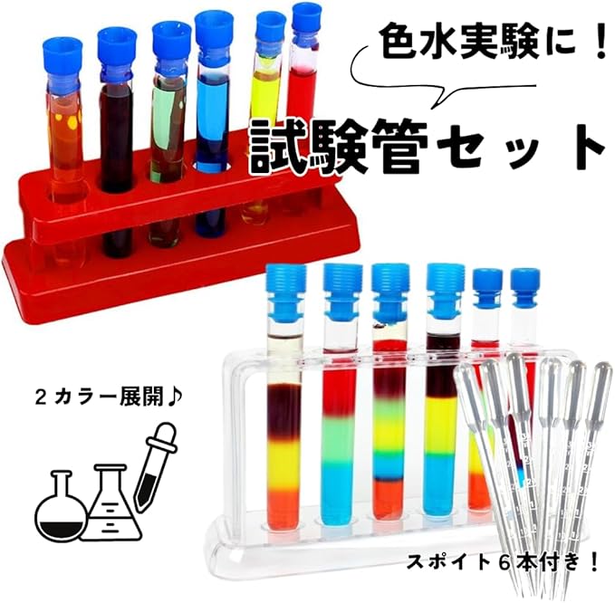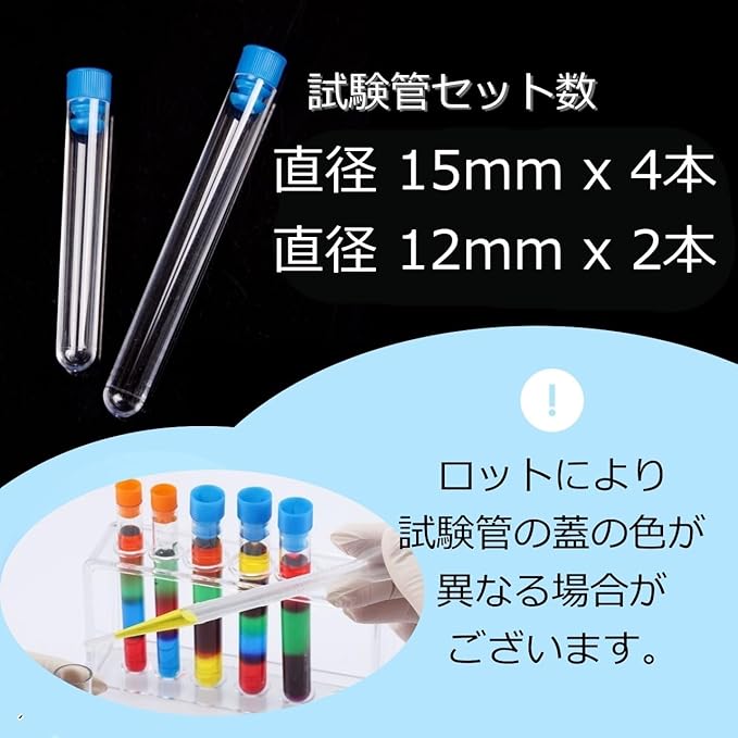 ✅※本製品はお子様の科学実験遊び向けに製造されておりますため、化学薬品・溶剤等の調合にはお使いいただけません。ご注意ください。※製造ロットにより、試験管の蓋の色が別の色になる場合がございます。