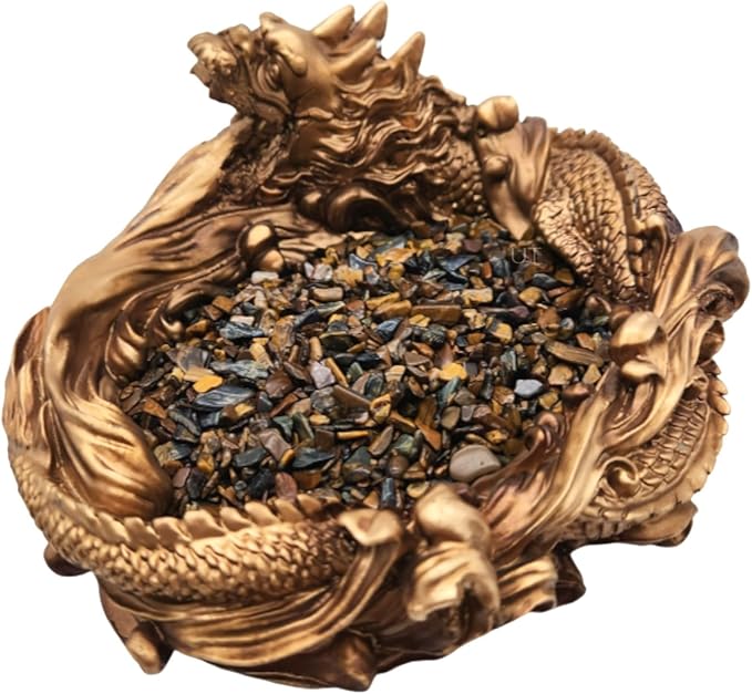 【内容】龍置物 1個 + タイガーアイ 200g/1粒 5~7mm