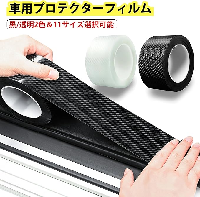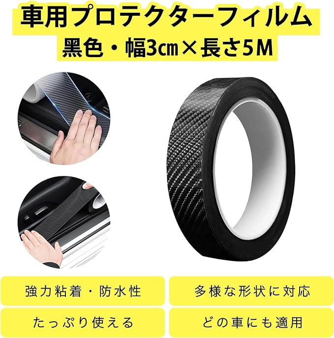 ★【どの車でも適用】 耐久性のある素材を使用して、わずか0.5mmの薄いデザインで、車のドアノブの使用に影響を与えません。プリズム構造により、光に照射するとわずかな光の反射効果が生じます。 幅の3/5/7cm、長さの3/5/10mを用意し、色は透明(クリアカーボン柄)とブラック(カーボン柄)の2種類から選ぶことができます。愛車の雰囲気に合わせてマッチし、どの色の車にも違和感がありません。