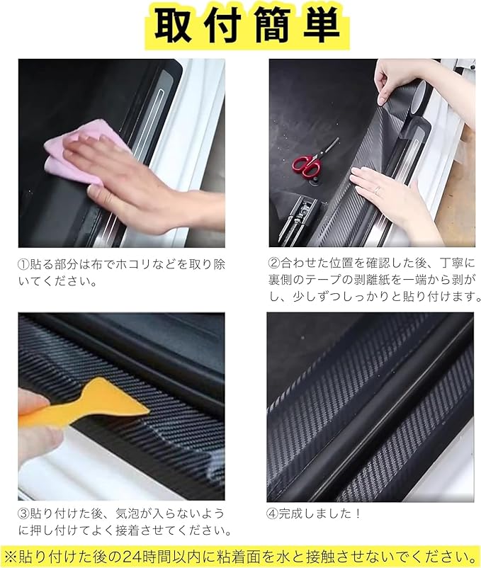 ★【傷防止・防水性】 既存の傷を隠し、新しい引っかき傷から車両を保護します。乗降時に靴などが接触する衝撃や擦り傷から、愛車の塗装を守ります。 防水性により汚れに強く、水で簡単に掃除できます。汚れた場合は水で粉塵などを洗い落として乾かすことで、粘着性が回復し、再利用が可能です。