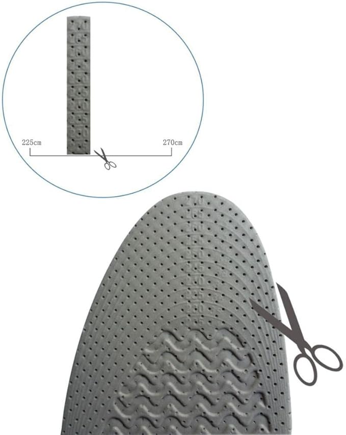 【フィット感のカスタマイズ可能】 インソールにはカットラインが付いており、お好みのサイズに簡単にカスタマイズできます。 靴のサイズに合わせてトリミングすることで完璧なフィット感を実現し、パーソナライズされた快適さを確保します。
