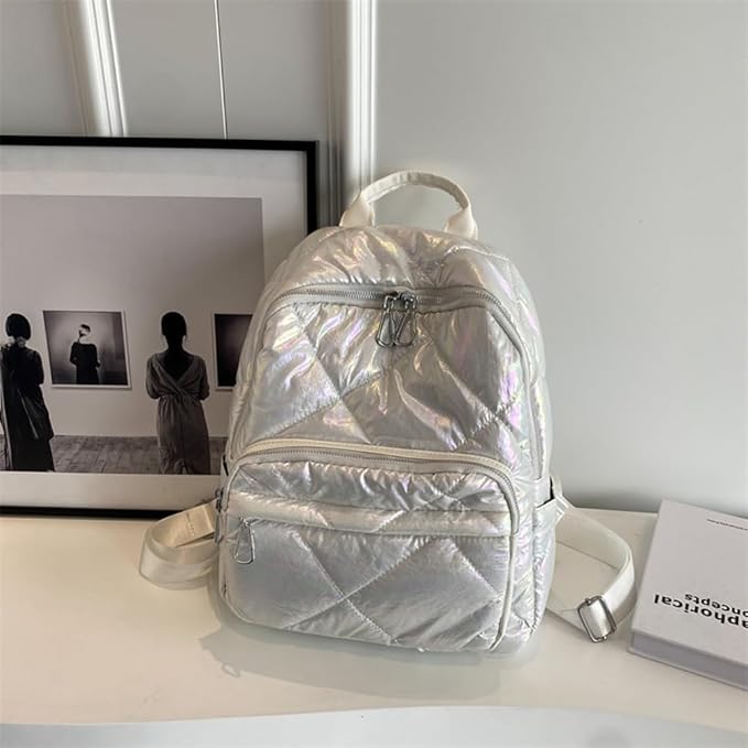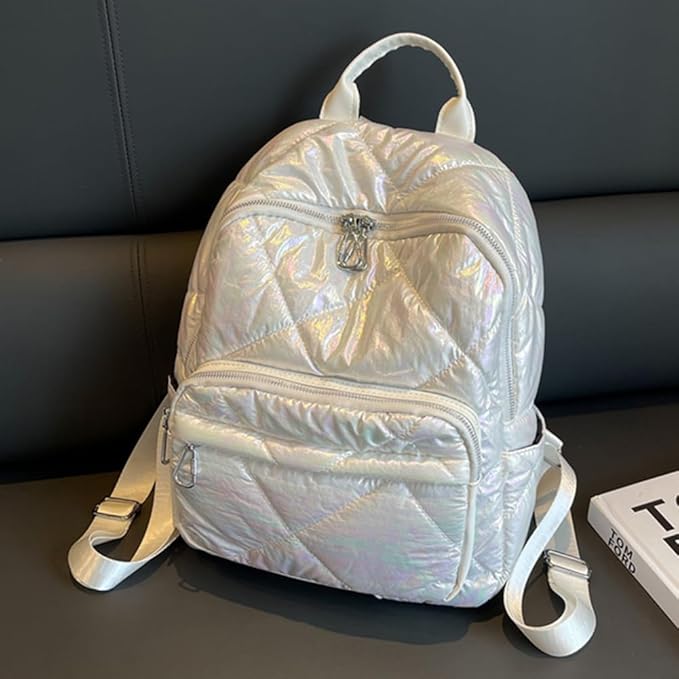 starhjy ショッピングリュックサック キルティング刺繍スタジアムハンドバッグ 無地 複数コンパートメント コットン シンプル 大容量 アウトドア キャンプ用品 (ホワイト) | oioioichan