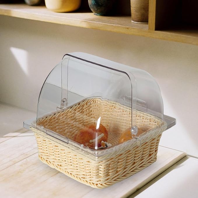 【開けやすい】ロールアップトップカバーデザインのプラスチック製長方形フードカバーで、簡単に開けられます。使いやすく、ディスプレイにも便利です。