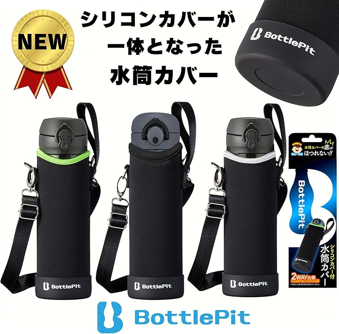 ※水筒は付属しません。【シリコンカバー一体型水筒カバー】耐久性と耐熱性のあるネオプレン素材でぴったりフィットの水筒カバーでしっかりホールド。水筒をキズから守ります。ネオプレン素材だから保温性も抜群。金属フック採用で耐久性強化。お子さまが少々やんちゃに扱っても壊れにくく設計しました。
