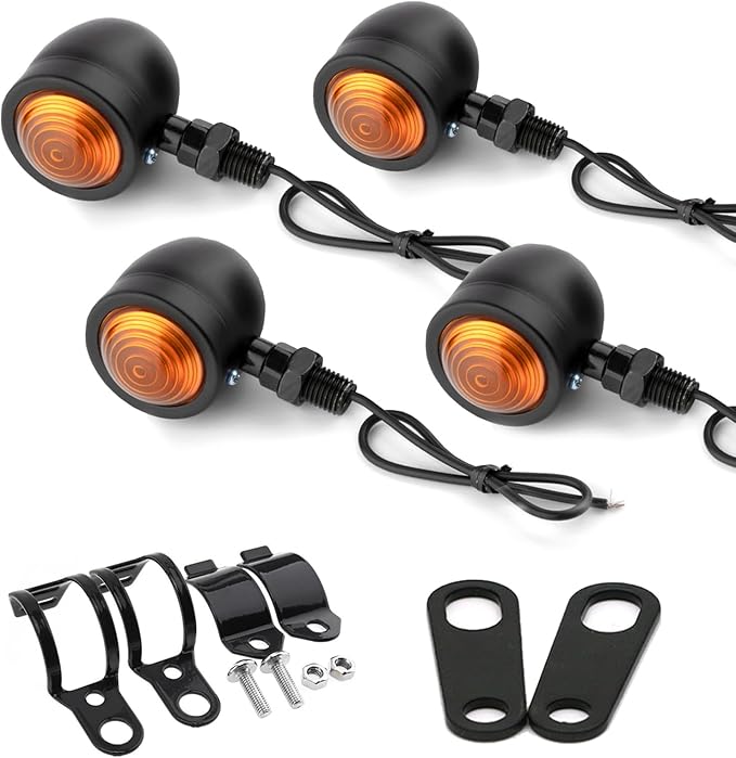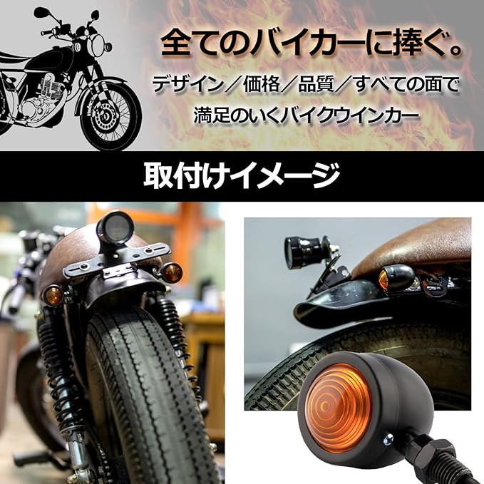 弾丸を意味するブレットウィンカー。チョッパー系、ハイテクカスタム、トラッカー、ストリートネイキッド、オフロード、カフェレーサーまで幅広く使えます。交換、設置簡単、瞬時にバイクをかっこよく!明るさ十分なコンパクトサイズ。