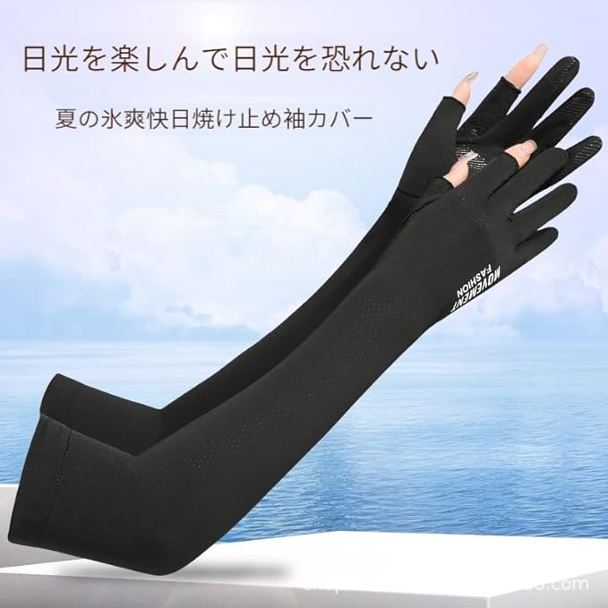 サマードライビンググローブメンズ&レディース 二本指の手袋 ロングメッシュアイススリーブ アームカバー 夏 日焼け防止 アームスリーブ【UPF50+・紫外線対策・ゆるい・手の甲までカバー】ー 日焼け止め UV腕カバー 日焼け対策 吸汗速乾 サイクリング スポーツ 蚊避け 男女兼用 | oioioichan